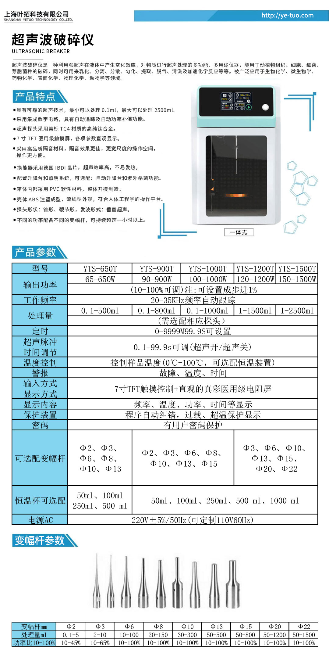 葉拓YTS系列一體式超聲波細胞破碎儀產(chǎn)品特點