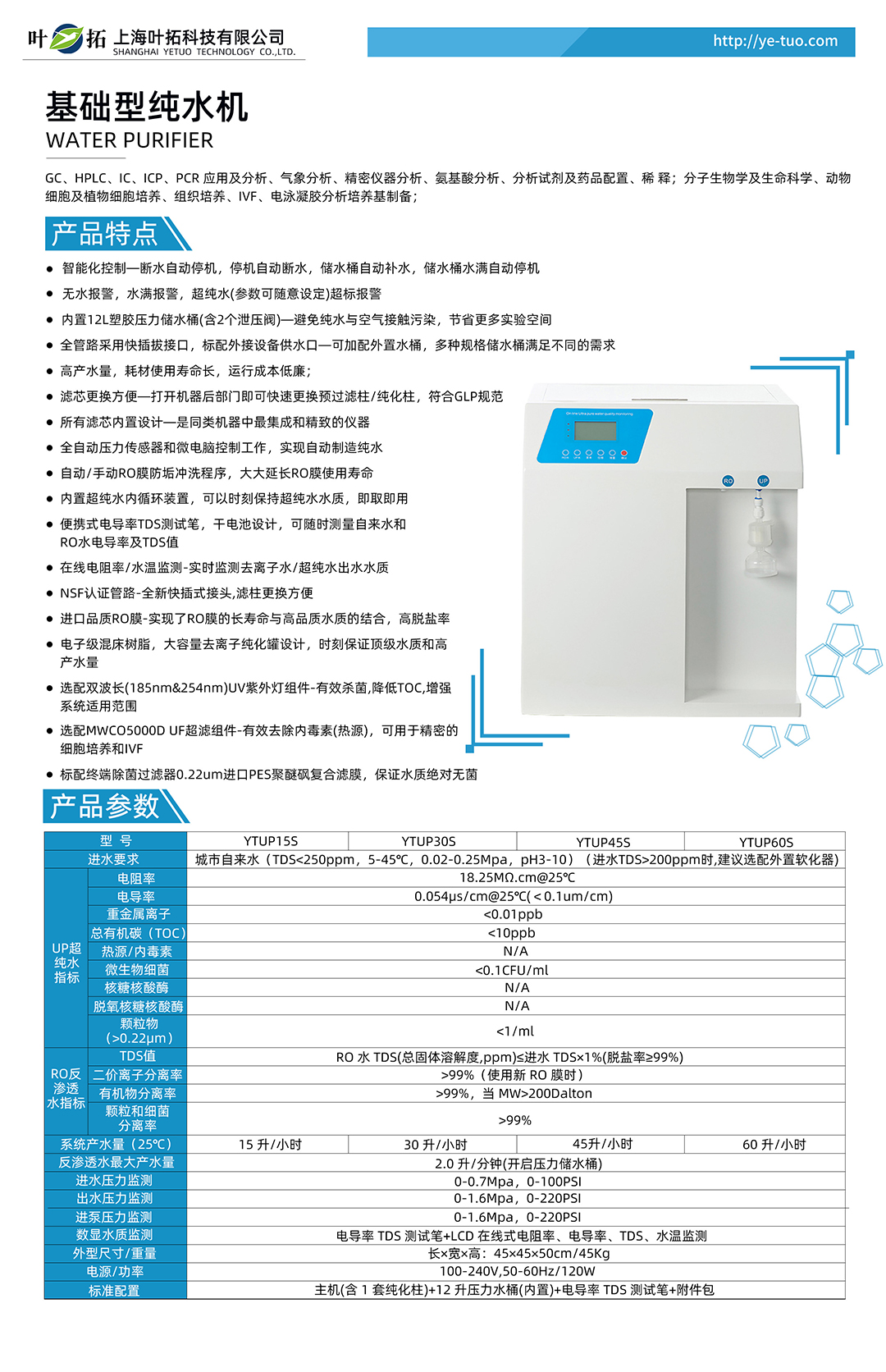 - 標配終端除菌過濾器0.22um進口PES聚醚砜復合濾膜,保證水質絕對無菌