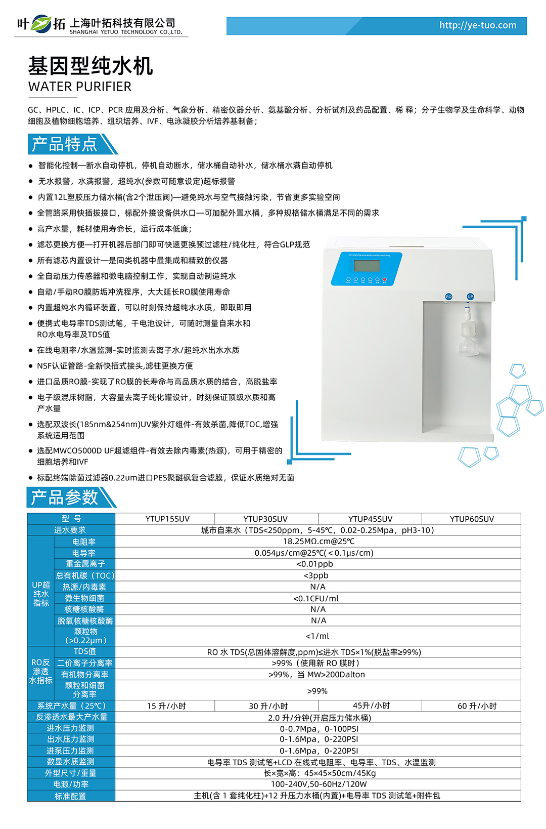 - 內置超純水內循環裝置,可以時刻保持超純水水質,即取即用