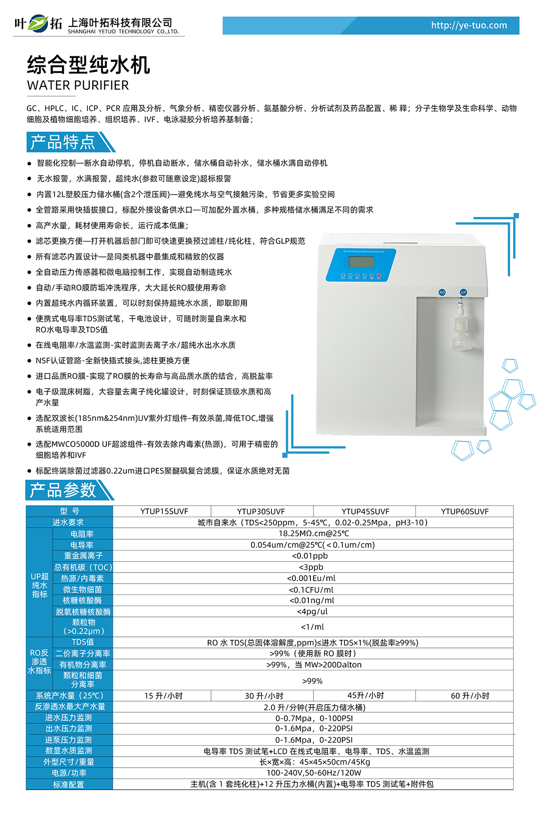 上海葉拓 YTUP30SUVF 綜合型純水機